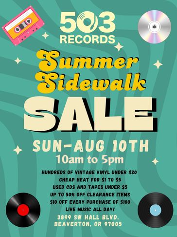 Our 2nd Annual Summer Sidewalk Sale is going to be poppin’! So many great vintage records will be available to dig through! Everything from Classic Rock to Classical! If you loved buying used albums then this is the sale for you! Lots of clearance items on sale as well as cheap heat and dollar bins, too! Enjoy a full lineup of live music and the 2nd Annual Card Show at @thesportsroom503 in the middle parking lot at Beavercreek Village. .
